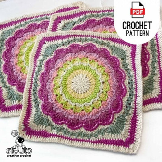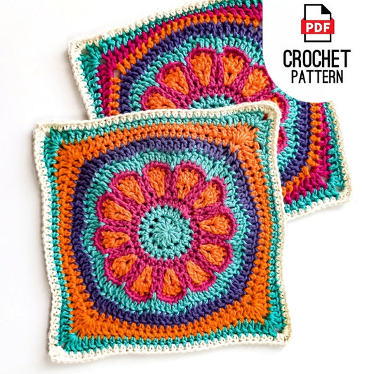 Crochet Blanket Square : Protea Large Granny Flower Square Pattern – Instant PDF Download