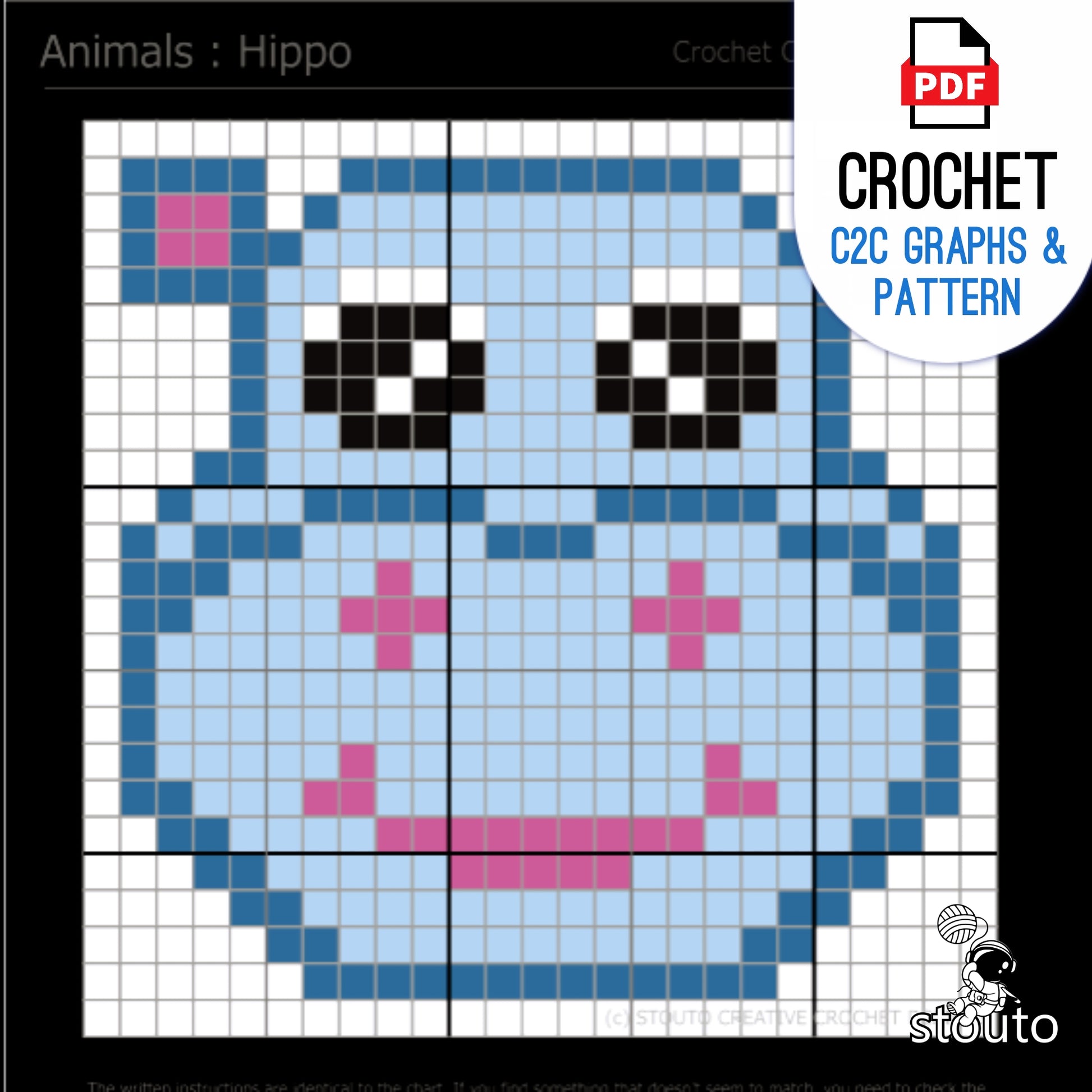 Graph C2C Cartoon Hippo Crochet Pattern & Graph